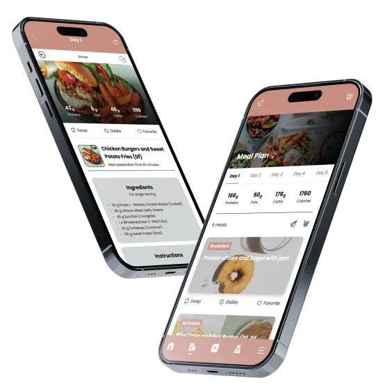 You will receive a personalised meal plan built around your goals and dietary needs, based on the information you share with us when signing up. These meal plans are completely tailored to your preferences, goals, lifestyle, and schedule.